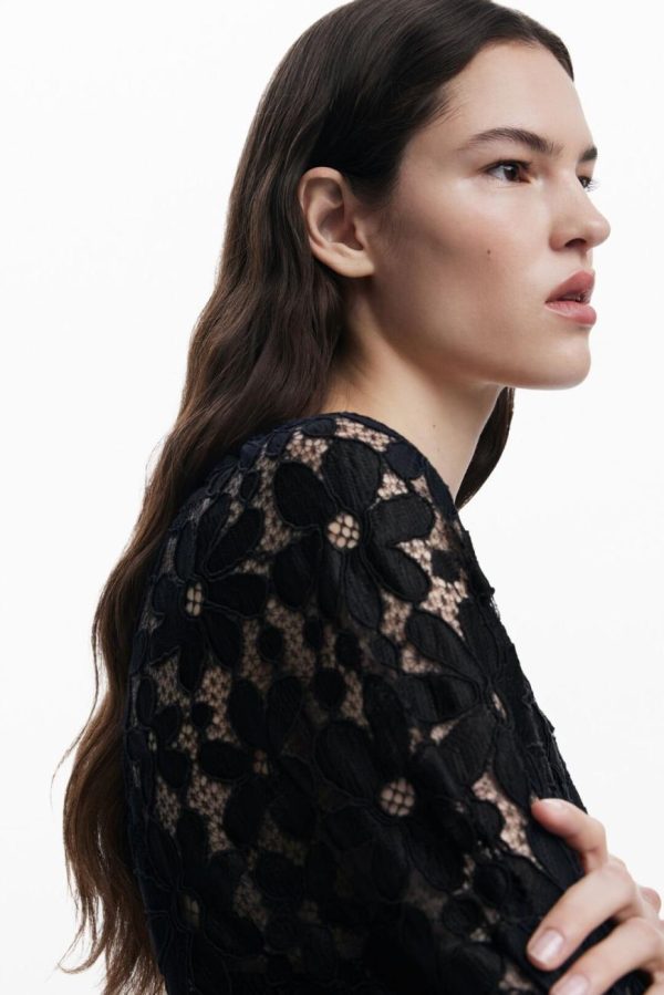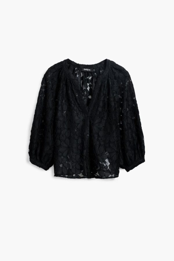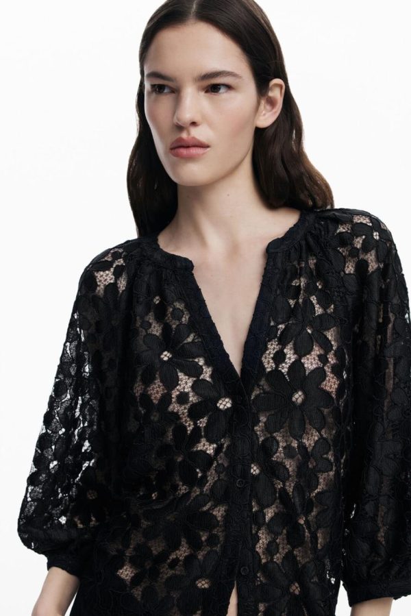 Desigual Women’s Black Cut-out Blouse with Floral Details