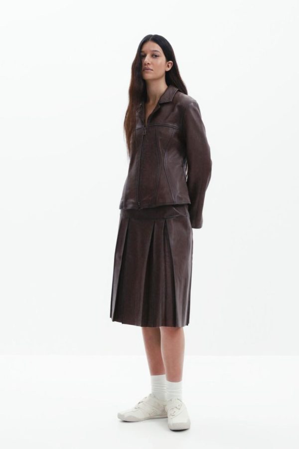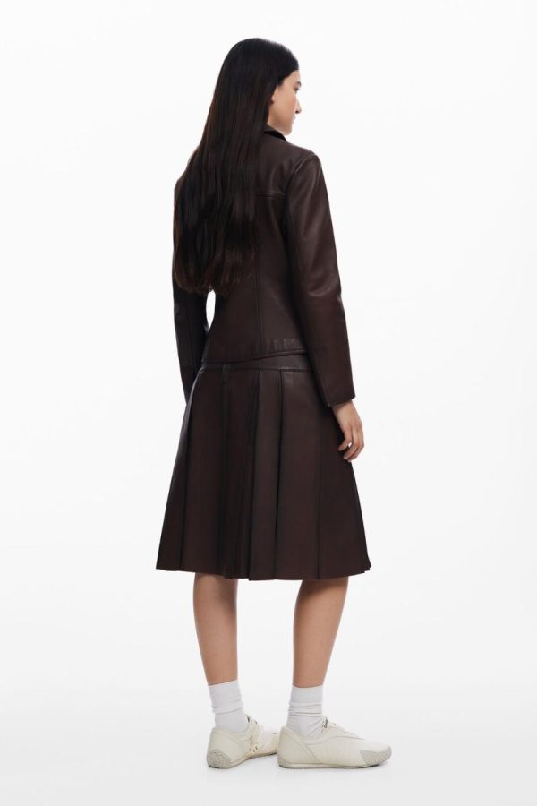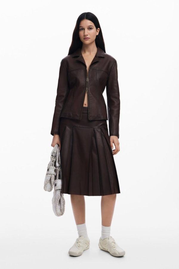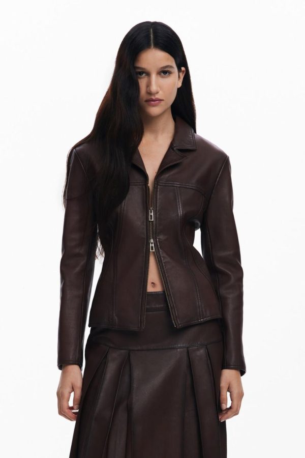 Desigual Women’s Brown Peplum Leather Biker Jacket