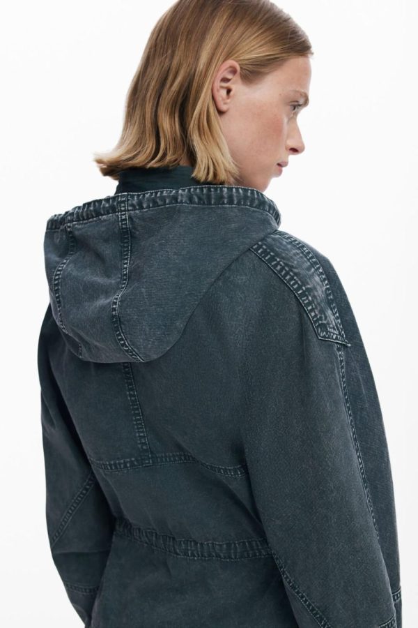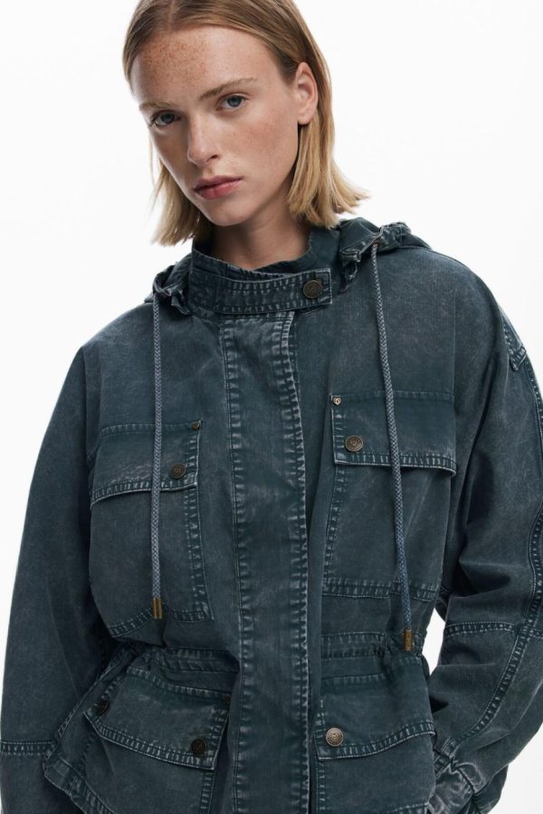 Stay cozy and stylish with our padded parka-style jacket featuring practical front flap pockets and an adjustable hood.