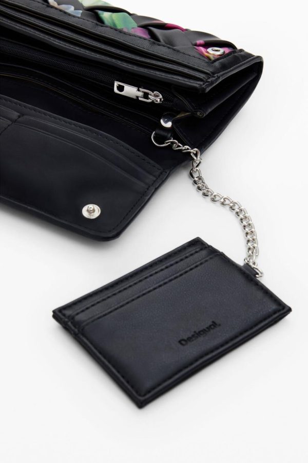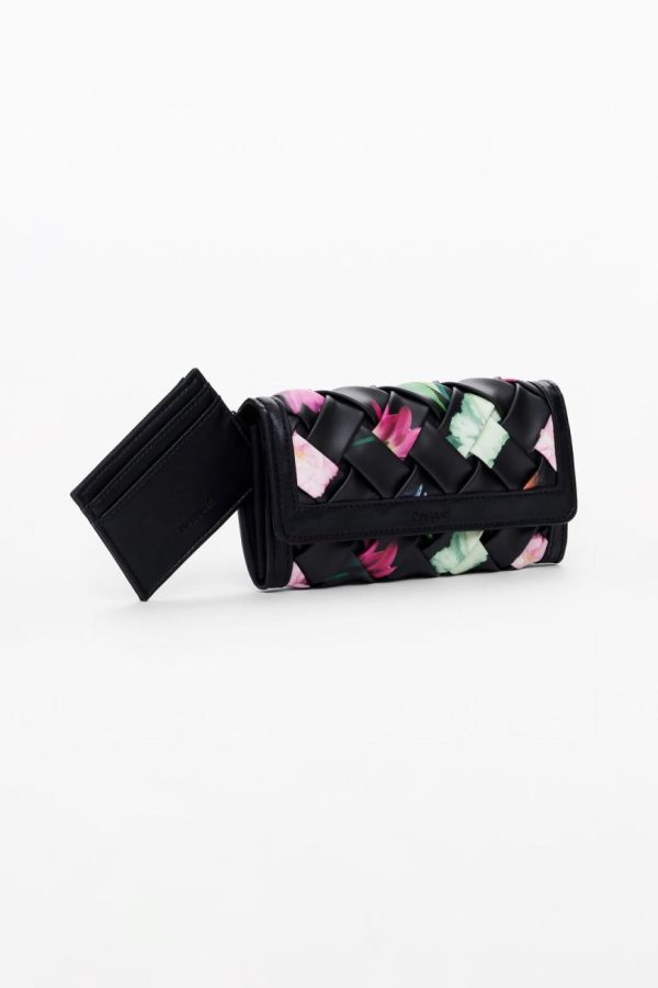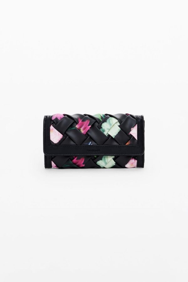Elevate your everyday style with this beautifully crafted wallet featuring intricate braided faux leather construction, secure click closure, thoughtfully designed interior compartments, vibrant floral print, and a convenient removable cardholder for ultimate organization.