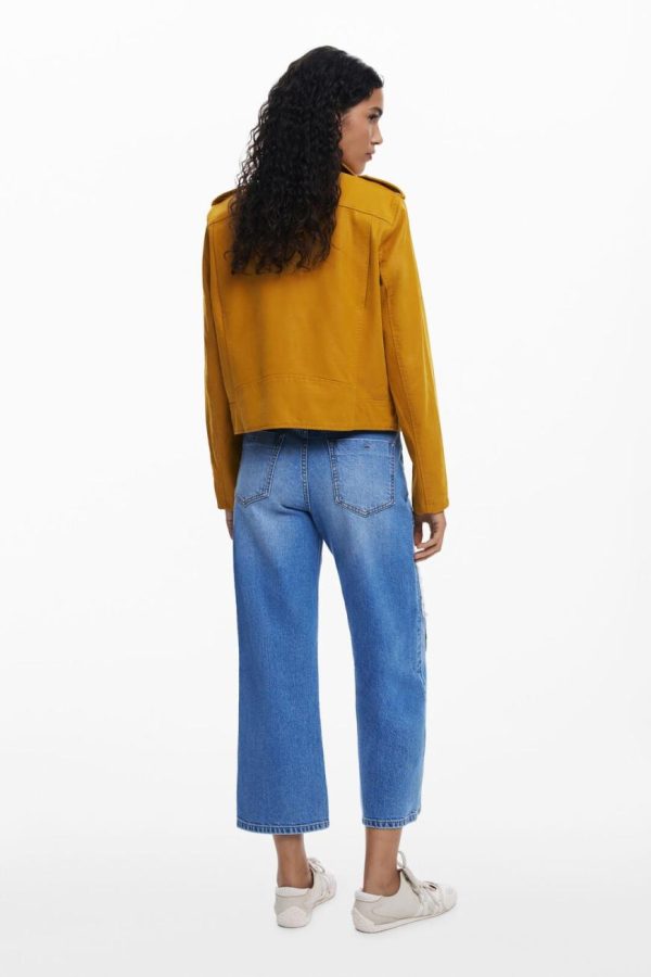 Make a bold statement with this edgy biker-style jacket crafted from premium faux leather, featuring convenient front pockets and a sleek side zipper in a vibrant solid color.