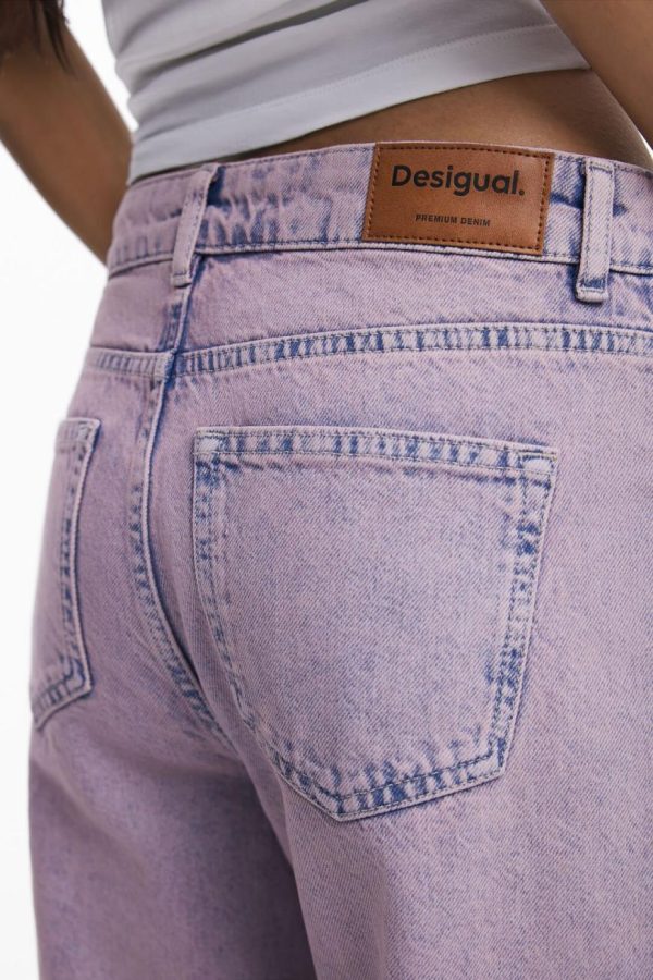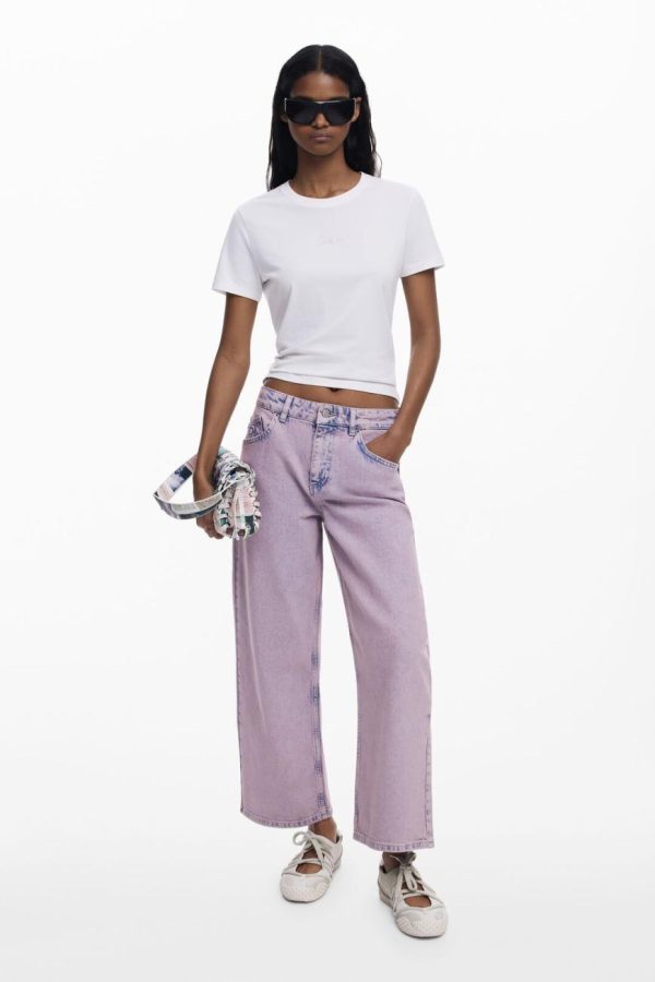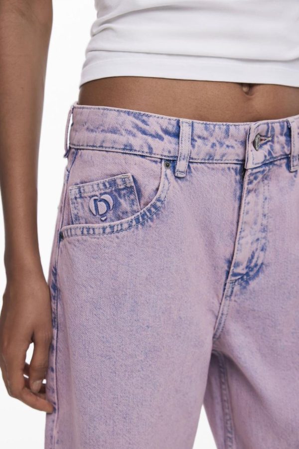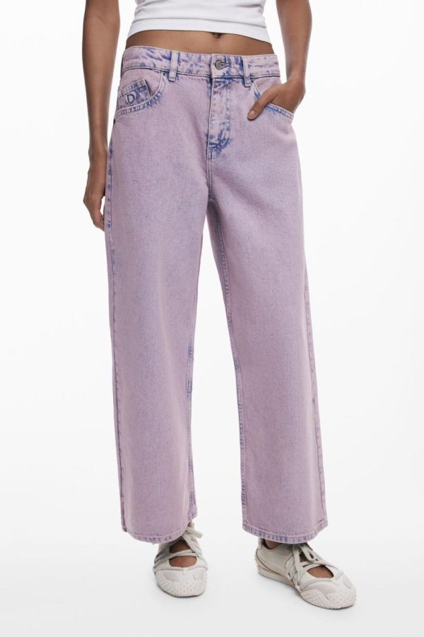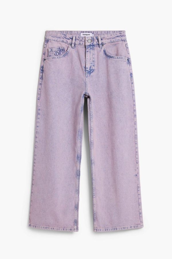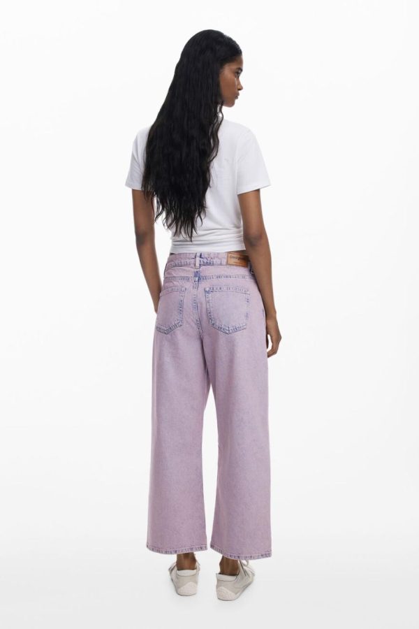 Discover these stunning culotte-style jeans featuring a vibrant solid color design with convenient front and back pockets, plus a secure zip and button closure for perfect fit and style.