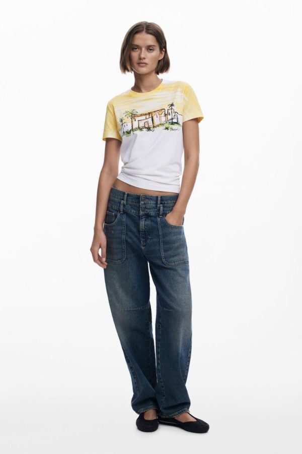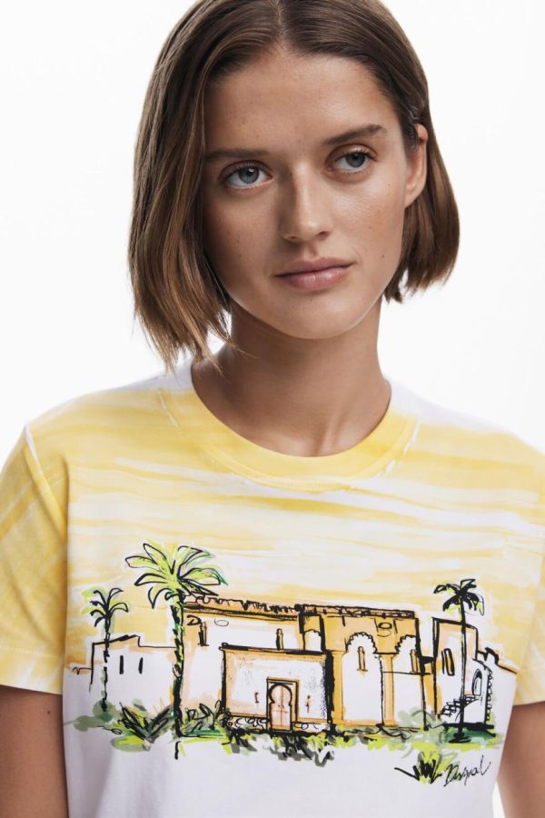 Desigual Women’s Short-Sleeve Palm Tree T-Shirt in Vibrant Orange