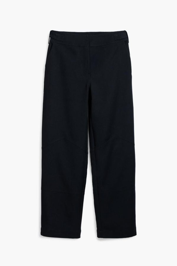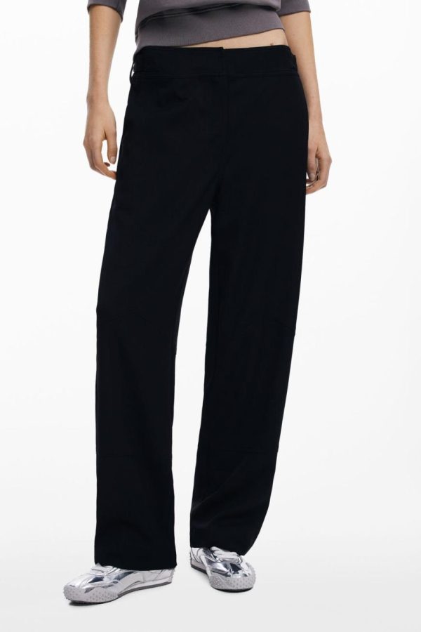 Elevate your everyday style with these versatile straight-cut utility pants featuring functional front and back pockets, distinctive waist detailing, and flattering mid-leg seam construction for a polished look.