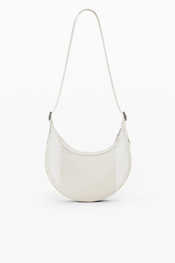 Discover this chic crossbody bag crafted from lightweight mesh fabric, featuring a secure zipper closure and an adjustable strap for personalized comfort in a versatile solid white hue.