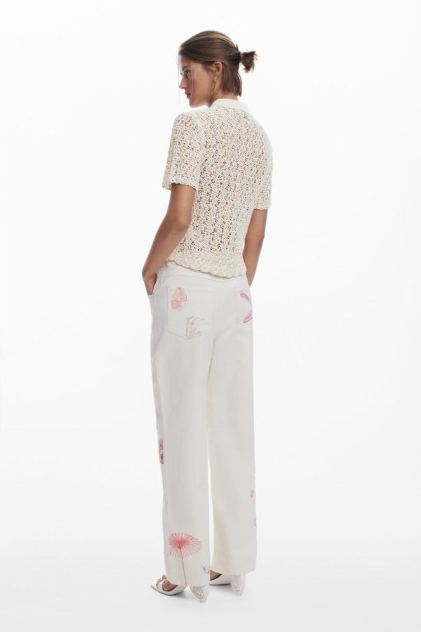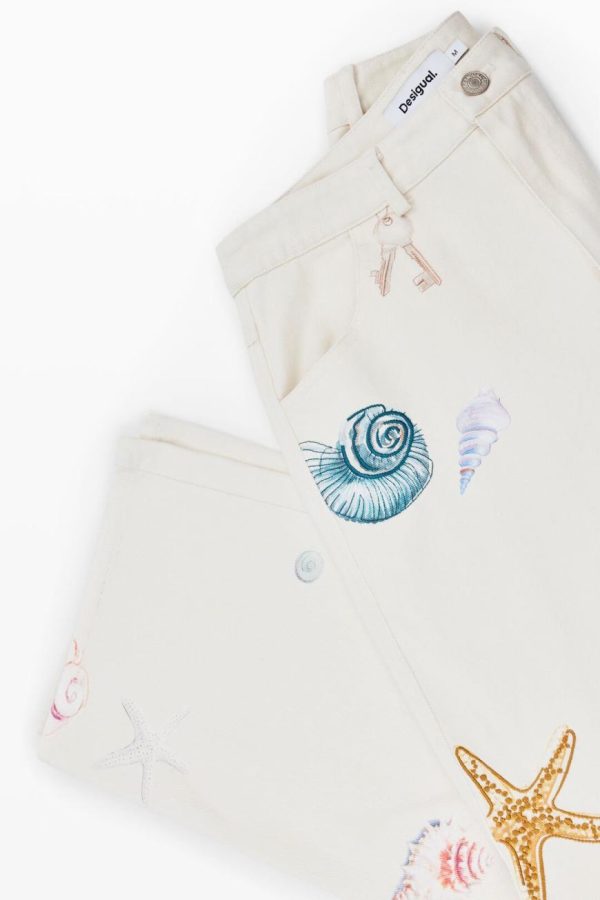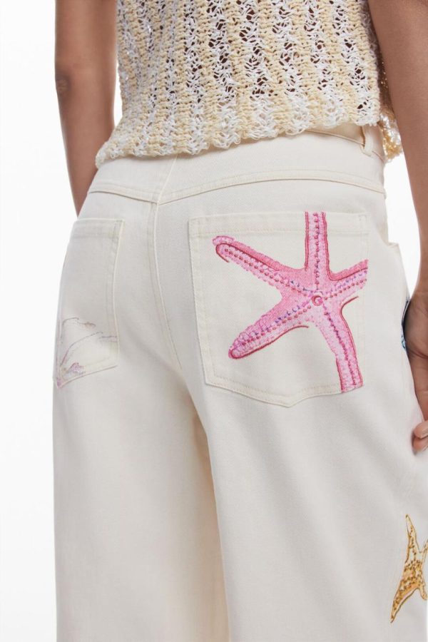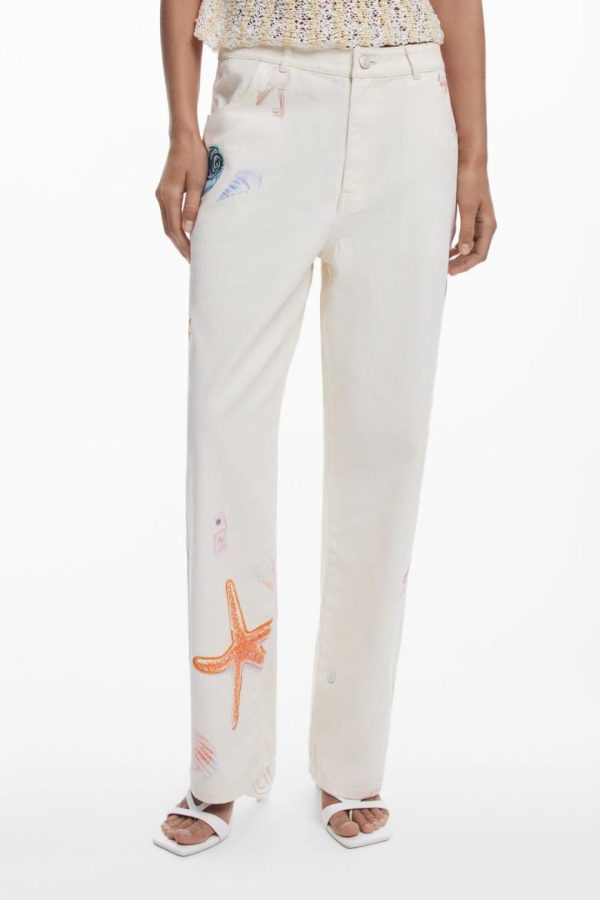 Elevate your casual wardrobe with these straight-leg cotton trousers featuring a charming starfish and marine-inspired print. Designed with both front and back pockets for practical everyday wear.