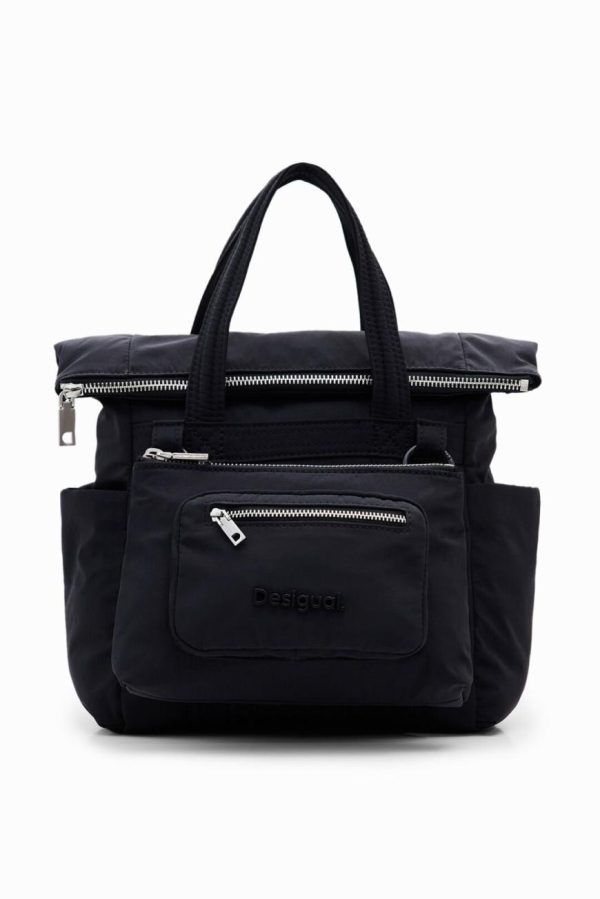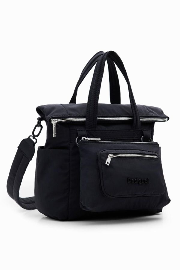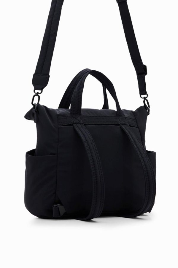 Lightweight nylon mini voyager bag with several straps that turn it into a backpack and messenger bag. It comes with a removable bag and mobile holder and multiple pockets.